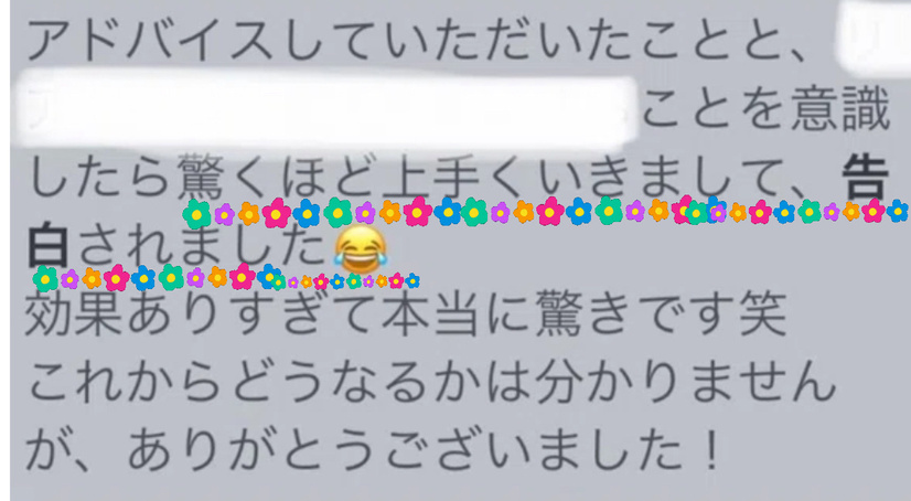 「スピード婚できた」「ビジネスで注目を浴びるようになった」など様々なお喜びの声を頂いています。